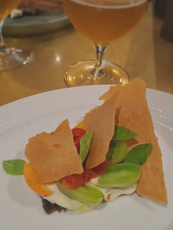 Then another smørrebrød: Sicilian tomatoes and a type of smoked cheese, washed down with a 0.0% IPA.